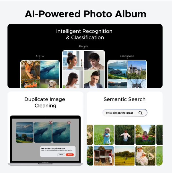 - AI Photo Magic: Auto-sort by faces, places, things. Instantly remove duplicates.