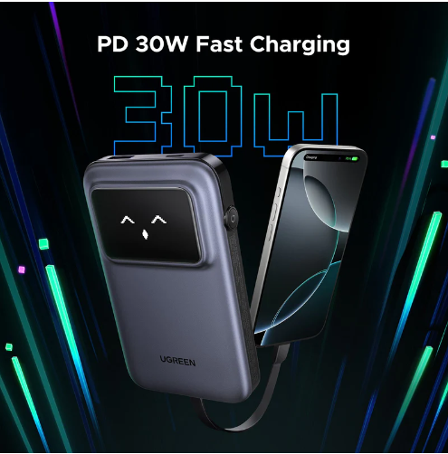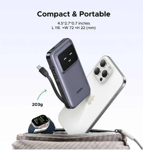 - Integrated Design: Ugreen portable charger has a built-in 1.6 ft usb c charging cable, which makes charging more convenient, it also has a USB-A and USB-C interface, which can power 3 devices simultaneously, maximizing productivity