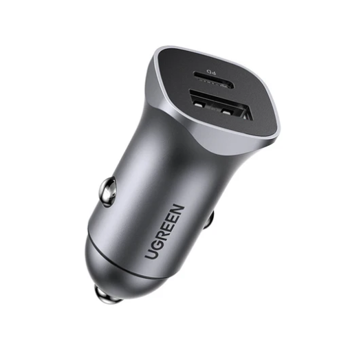Ugreen fast car charger USB-A / USB-C 30W PD PPS gray (CD130)